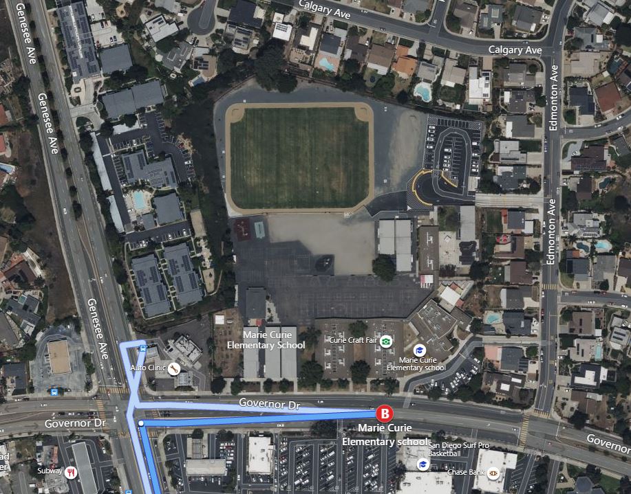 I-805 N to Governor Drive, turn left. Turn Right on Edmonton Ave, School is down the street on the left.